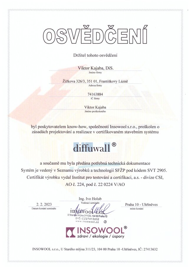 Certifikované difúzně otevřené skladby INSOWOOL - Pavatex