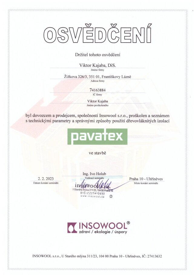 Jsme dodavatelem certifikovaných difúzně otevřených skladeb f. Insowool s použitím dřevovláknitých desek PAVATEX