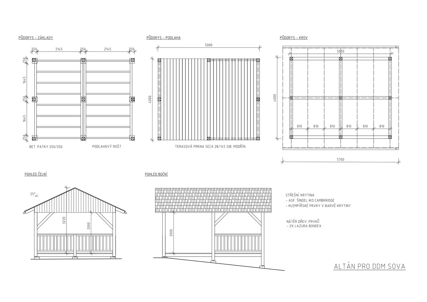 - krovy, pergoly, altány a krytá stání